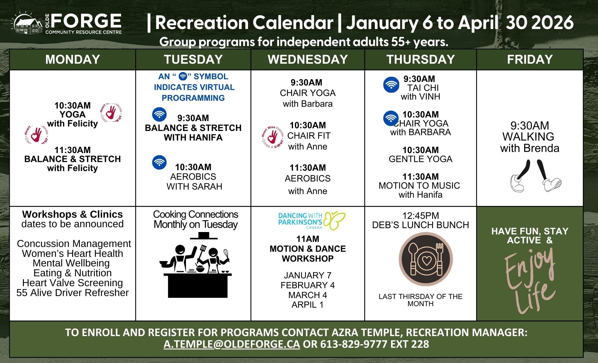 Group programs for independent adults 55+ years.